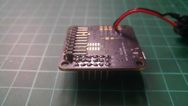 Antes de que la soldadura en el controlador de vuelo, prueba de que funciona al conectarlo a la computadora mediante un cable USB micro. Si encienden todos los LEDs correctos y ha conectado con éxito, puede desconectarlo y pasar a la soldadura. El Naze32 viene con un conjunto de pines. La soldadura de los pernos en sus agujeros correspondientes. Para soldarlos en cualquier forma que quieras. Decidí ir para una estructura de bajo perfil y soldar los pines del cable breakout debajo de la Junta.