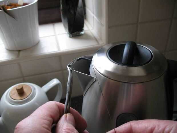 Hervir el agua en un hervidor de agua y la curva del gancho del gancho agarrador con el fórceps y mantenga sobre el vapor durante unos segundos el tubo de pesca abajo en un ángulo ligero.