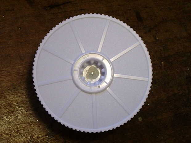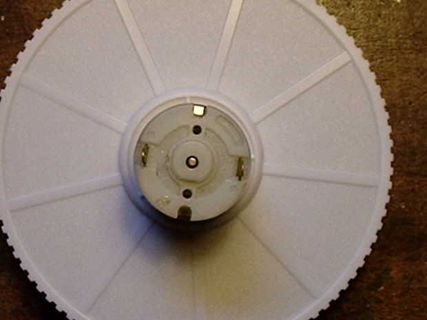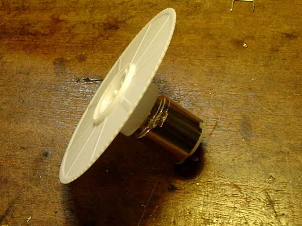 Después hizo un agujero en el carrete, montar el carrete en el rotor del motor y lo pegan, no cubra la punta del rotor con el pegamento ya que se soldar un trozo de alambre hasta la punta del rotor y asegúrese de que usted nivela la bobina en el motor correctamente, de lo contrario harán vibrar mucho.