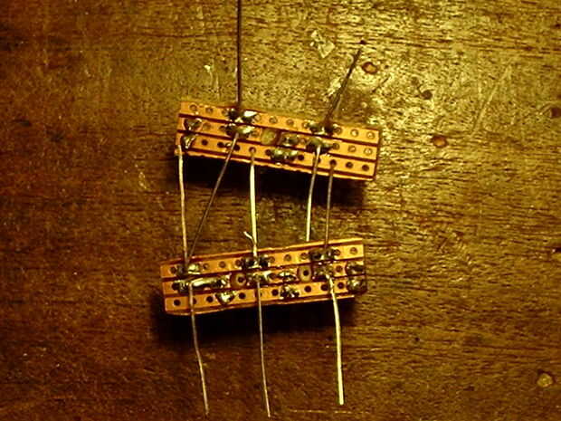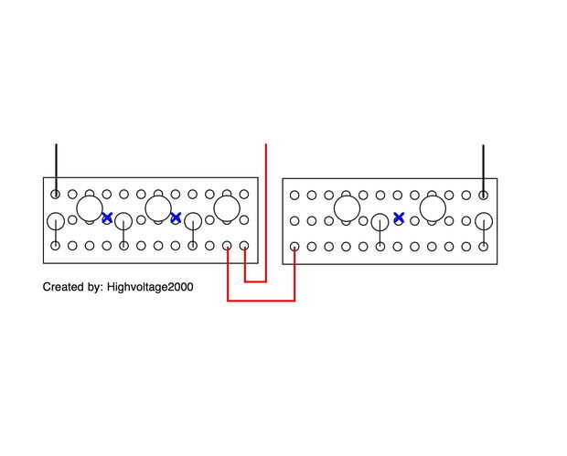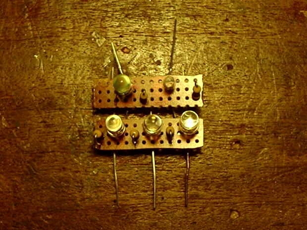 La soldadura del LED, resistencias, cables y pista cortada como en este diagrama y ten cuidado con la polaridad de los LEDs!