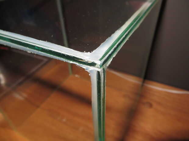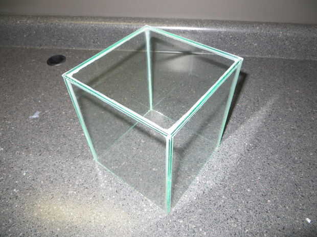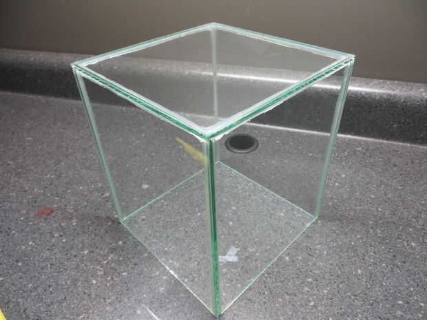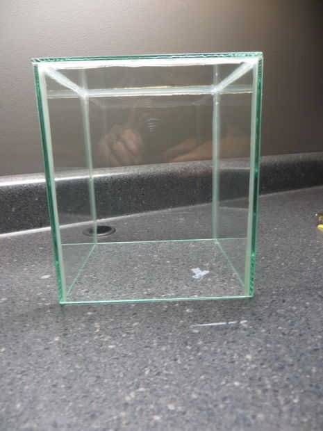 Una vez que se cortaron los pedazos de vidrio silicona se utilizó para unir los paneles de vidrio. Todos los bordes de la caja eran lijar luego (con la ayuda de la empresa local cristal) así que no se quedaron bordes afilados.