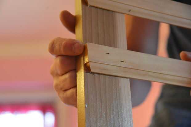 Nos pegaron y atornillaron una barandilla de interior marco de la cama. Robaron el espacio de cubierta pasamano código de edificio y había hecho para que una esfera de 4 pulgadas no puede pasar a través de él y quedar atrapados.