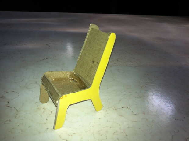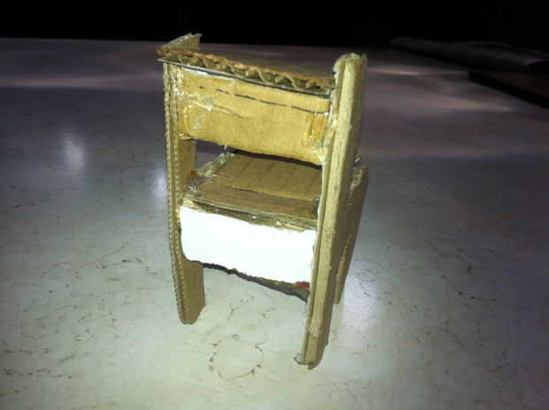 Luego, con la cabeza llenado de muchas muchas sillas, consiguió un cartón delgado de una caja de galletas y bosquejó a mano alzada el perfil de una silla. Le di un leve perfil Androck, pero más moderno estilo y mucho más cuadrado. Tuve cuidado con el centro de gravedad en el modo de escritorio (no volcarse por favor).