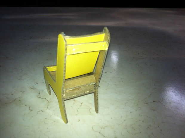 También, había hecho frente más ancho que la parte de atrás, y el modelo de la escala mostró que no parecía tan agradable en una silla más grande, así que descarté la parte del diseño.