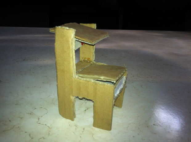 Eso es lo que provocó la idea de diseñar una silla convertible, uno que era una silla convencional "en la posición normal" y que podría transformar en la segunda forma que usaría el respaldo como un escritorio en la posición"convertible", por lo que una vez que los niños lo superó, todavía podría mantenerlo alrededor y utilizarlo como mi hermana.