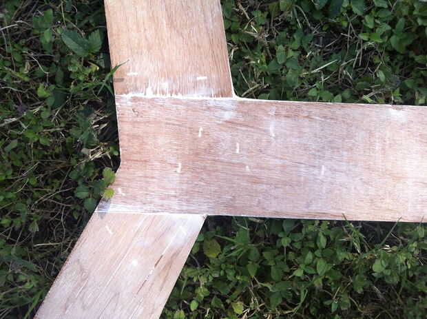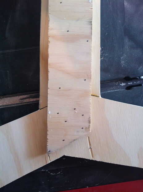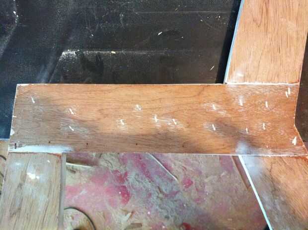 Ya que quería darle el pegado Unión como apoyar tanto como sea posible, pegados y clavados una cara de madera contrachapada de 5mm para el "frente" de las partes.