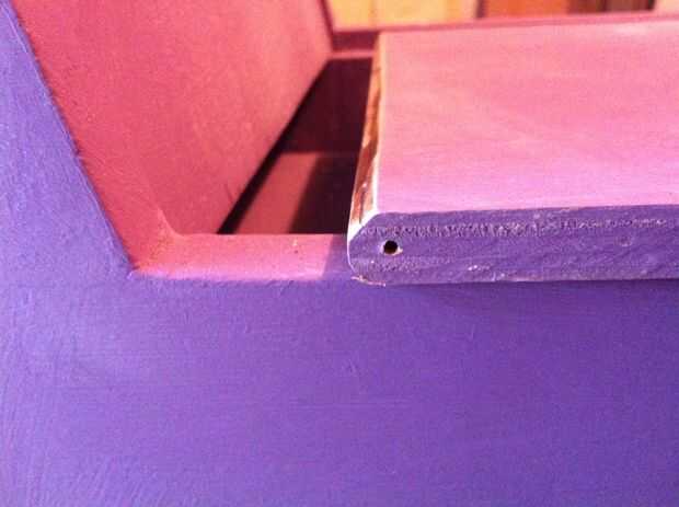 - Colocar la tapa del cajón y las uñas. Coloqué una pequeña arandela de plástico entre el respaldo y los laterales de la silla.