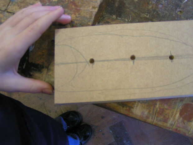 Dibujaban contornos en las bases, dejando la madera suficiente alrededor de los orificios para la fuerza.