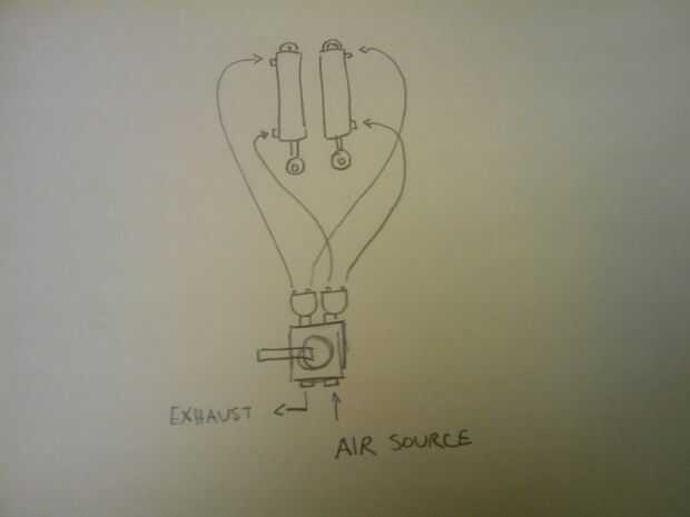Recomiendo jugar con esta configuración antes de adjuntarlo. Es necesario tener una idea de qué tan rápido pueden abrir los pistones. Tenga en cuenta que se traducirá este 4 pulgadas a varios pies así. Esencialmente, pueden abrir las alas en un abrir y cerrar de ojos. Lugar velocidad de limitación de presión accesorio en los cuatro puertos de los pistones. Practique con ellos hasta que tenga una buena velocidad incluso, decir aproximadamente 1" por segundo. Se puede acelerar esto más adelante pero a partir de más lento es siempre mejor.