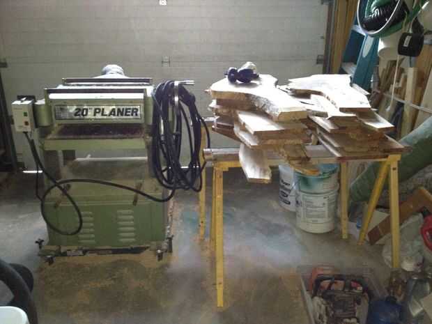 Mi taller es pequeño. Para crear el espacio de trabajo más, instalé una carretilla con ruedas bajo el cepillo para mover a una posición de trabajo y luego volver a una posición más apartada. Un dolly era necesario porque cepillo pesa aproximadamente 1.000 libras.