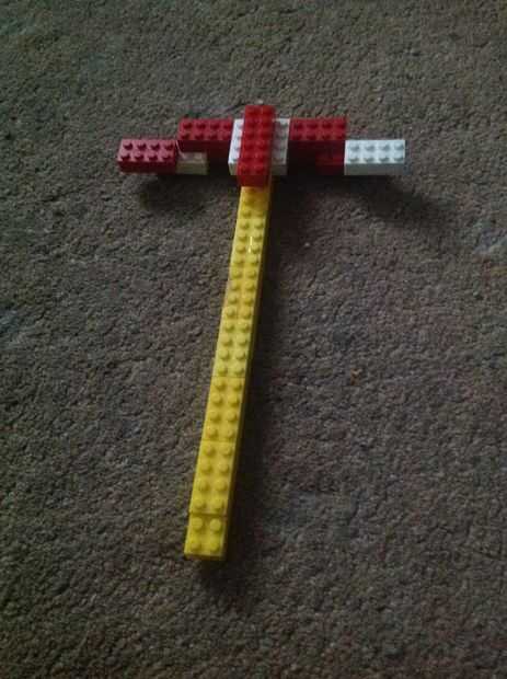 esto te mostrará cómo hacer un modelo de Lego de la piqueta del videojuego Minecraft.Porque sus 8 bits de estilo cada cuadrado de 2 x 2 es igual a 1 píxel, por lo tanto su exacto con lo real.  Su alrededor 3-4th tamaño real por lo que se puede todaví