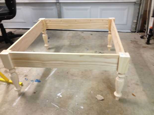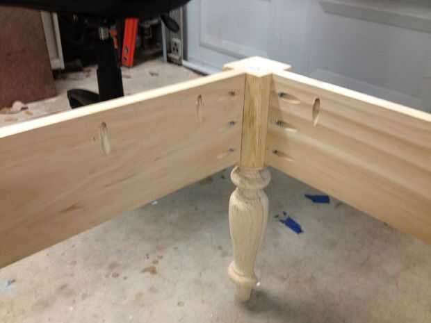 Mi plan era utilizar tornillos de bolsillo para todo. Usé un Kreg jig del agujero de bolsillo (una de mis herramientas preferidas) para 5 agujeros uniformemente espaciados en cada pieza de la falda en el interior del taladro superior borde a Monte a la mesa. Luego perforé 3 en cada extremo para montar en las piernas. No entraré en el uso de la plantilla aquí. Hay muchas maravillosas Instructables aquí que puede mostrar cómo. Tiempo de montar la falda y las piernas. Un ayudante será muy útil aquí. Tuve uno por un corto tiempo pero luego tuvo que manejar con el uso de una barra de sujeción. Coloqué dos piernas boca abajo en cada extremo de una pieza de falda (boca abajo también). Coloque pegamento en cada extremo de la falda. Sujeta las tres piezas juntas así que pude insertar los tornillos de bolsillo. Repita del otro lado. La razón que lo hice en el piso era mantener todas las partes al ras para que estén al ras con la tapa de tabla. Una vez que las piezas unen las dos mitades con las dos tablas restantes de la misma manera.