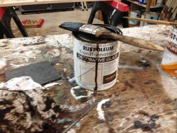 La tabla finalmente fue montada. Llené las grietas en las esquinas a inglete con relleno de madera teniendo cuidado de no sobre llenar el área. Masilla para madera, como pegamento, puede bloquear la mancha a veces y no permite un buen acabado. Una vez que todos los agujeros de clavo etc. se llena y se secaron, todo tiene un lijado. Lija las esquinas a inglete en más que una articulación plana acabada. El resto tiene una luz de lijado para la preparación para la tinción. Todo fue manchado con tres capas de una mancha de aceite de color castaño. Luego añadí dos capas de poli raso agua. La madera todavía tenía un aspecto irregular a la mancha por lo que todo había esmaltado. Ayudó incluso el color y agregar algunos caracteres. Todo lo di dos capas más de poli.