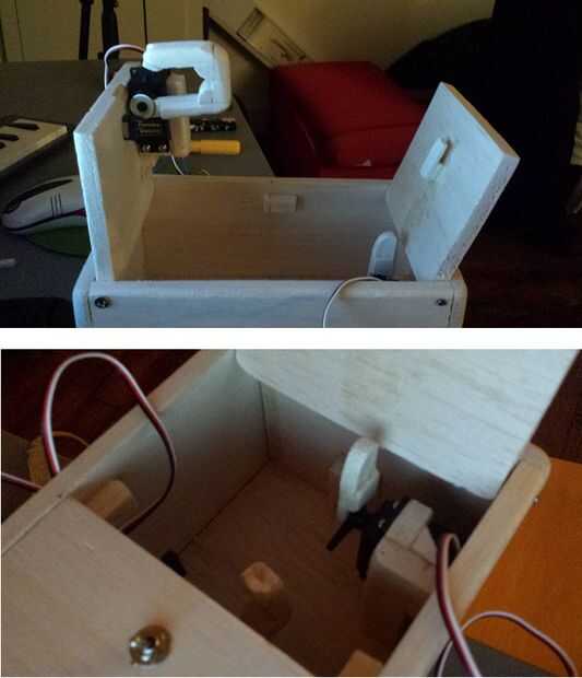 Por debajo es como lo hice. Sólo una nota sobre el servo de la mano. Usted necesitará el eje del servo a ser directamente debajo del borde de la cubierta (como se muestra abajo), para evitar duro en la fabricación de una mano que puede con éxito golpea el interruptor y también poder ir nuevamente dentro de la caja.