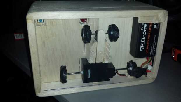 Asegúrese de colocar el engranaje como centrada posible para equilibrar el cuadro, usted puede necesitar poner algo de peso dentro de la caja para equilibrar más después del montaje final, como la batería que utiliza es un poco pesado (100 gr) y causó algunos ondulación al cambiar o mover la caja.