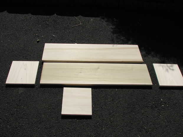 Con la sierra circular, corte la madera en las siguientes piezas: 1. 3' para la base 2. 3' largo para la espalda 3. 10 1/2" para el extremo izquierdo 4. 10 1/2" para el extremo derecho 5. 9" para que el divisor