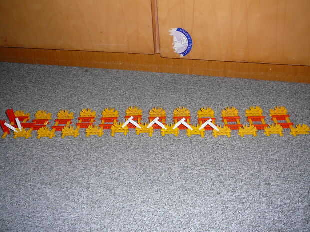 aquí están las instrucciones sobre cómo hacer la máquina más pequeña de la bola en instructables.Paso 1: Lista de piezasLista de piezasBarras deRojo - 1Amarillo - 12Azul - 26Blanco - 12Verde - 30ConectoresAzul - 15Amarillo - 10Violeta - 27Rojo - 2Gri
