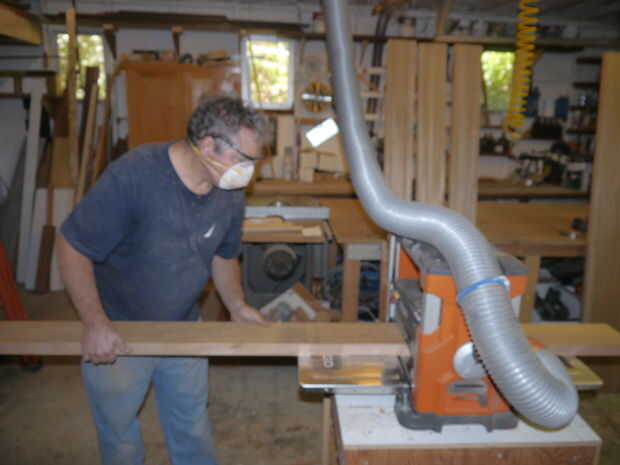 No tengo una empalmadora así que alisar las juntas con mi sierra de mesa clavando un borde recto para el lado de la cerca del tablero y ripeo el lado opuesto. una vez que las tablas son rectas, arrancó a 12"(guardar los recortes y utilizarlos más tarde para las paradas) ancho así que encajaría en mi cepillo. Una vez cepillada (hice mío de 1.5" de grueso) luego arrancó los largueros a 6" y corte el carril inferior de carriles 12 pulgadas y riel superior 6". la matemática es simple un 2' x 6'8 "altura puerta de apertura por ejemplo amplio sería estilos amplia de 6" con 12" ancho carriles. Esto dejará suficiente material para cortar el biselado de la puerta y conseguir que 1/16" a 1/8 espacio libre una vez que la puerta se encuentra en el atasco.
