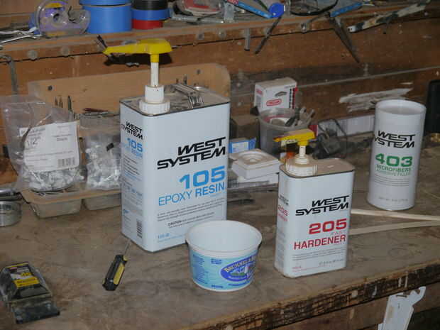 Luego mezclar el epoxi. mezcla es fundamental así que siga las instrucciones y luego cuando crees que ha mezclado bastante, mezclar más. luego añadir el espesante de microfibras. Añadir lo suficiente para hacer que la consistencia de la pasta de dientes.