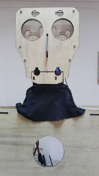 He utilizado uniones machihembradas para arreglar el pecho con los hombros, el cuello y la espalda. Entonces usé tornillos de 4 mm x 20 mm para fijar el marco de madera con esqueleto Artelon y tornillo de 12 mm x 30 mm para fijar el esqueleto del Artelon con base del robot.