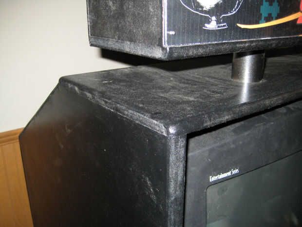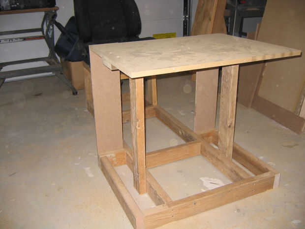 Poner su 3/4 de pulgada 4 x 8 hoja de mdf en algunas VI caballos. Dibujar y recortar los lados grandes, TV base volante base y paneles de piso. Mida y corte la parte superior, respaldo, piezas laterales inferiores y parrilla consola de mdf de 1/2 pulgada. Tornillo de todo el marco como se muestra en los planos. Para instalar la plataforma de xbox dentro de la ranura del gabinete, alrededor de la ayuda de 2 x 4 y tornillo en tres lados.