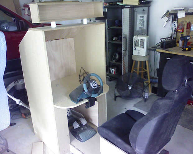 Corte y fije la placa de refuerzo del volante de fondo a la debajo de la base de la televisión. Utilizando una sierra de calar, cortar el volante base hacia fuera y alrededor de su agrado. Un paso adicional opcional en este momento es a los sostenedores de taza del router en la base del volante. Hay espacio para él, y me gusta tener un alto frío conmigo cuando yo estoy manejando mi 1985 Porsche 911 por medio de la Coconut Beach.