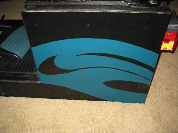 Después de que se seque, utilice un cepillo para detalles a mano de pintura las llamas en los lados y debajo del asiento. Recomiendo hacer una plantilla de cartón de su diseño que puede ser fácilmente recreada en todos los lados. Entonces una placa personalizada en la parte posterior a mano alzada.