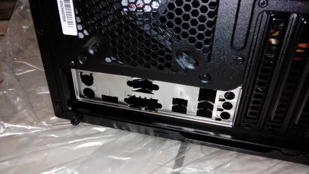En primer lugar, conecte la pletina de E/S la torre media, antes de instalar la placa base.
