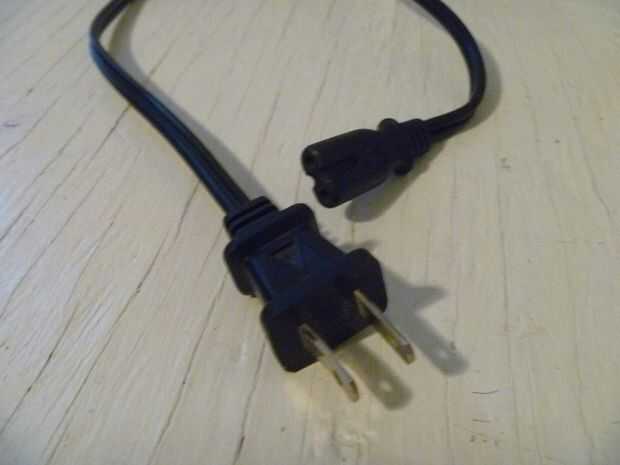 El cargador de baterías que seleccioné no viene con un cable de estilo americano. Esto no fue un problema para mí - acababa de usar un cable del cargador del ordenador portátil viejo que se muestra.
