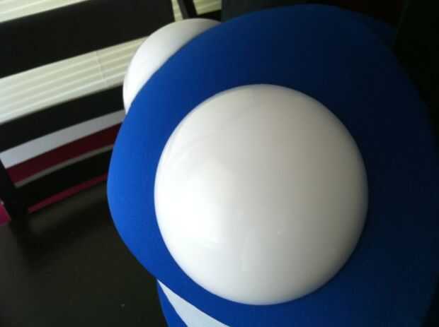 Prueba de ajuste sus ojo cúpulas sobre la iluminación y comprobar si colocación. Cuando esté satisfecho con la colocación, aplique una tira fina de pegamento alrededor del borde interior de la cúpula de acrílico blanco, uno a la vez y colocar sobre la fuente de iluminación. Tenga cuidado de no gotear cualquier pegamento en la tela de la cabeza.