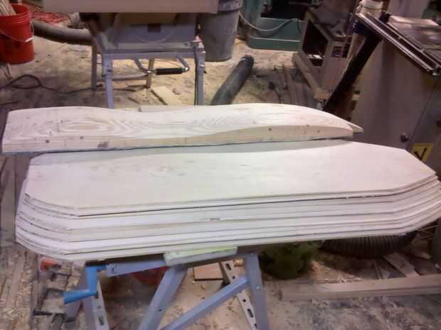 Puede omitir este paso y encontrar lugares que todo listo fabricación tablero largo plys. Sin embargo, si usted decide cortar su propio sus tablas simplemente volver a Sierra. Comience con 10" de ancho y 40" tablas largas. La longitud extra ayudará a mitigar cincelado. Ejecutar las tablas a través de la sierra y lisa hacia fuera. Al final de este steip que debe tener 6-8 plys son 3/16"- 1/8" de espesor.