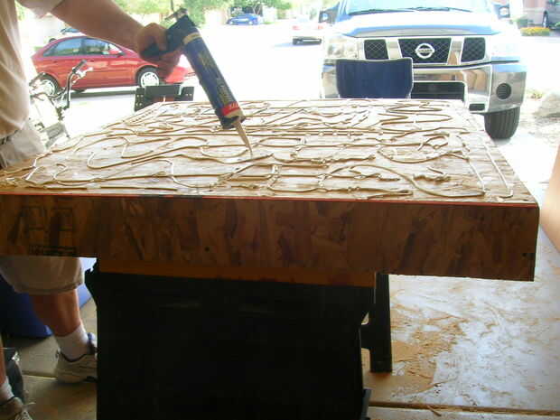 Después de que tuve todos mis paneles en su lugar que comencé usando un perno de balanceo, ver foto más abajo, cuatro aplicar presión uniforme en los paneles para ayudar a extender el pegamento por debajo de los paneles.
