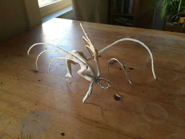 Las alas se unen al cuerpo y comenzar a construir hasta los cuartos delanteros y los hombros con papel y cinta. Esto ayudará a asegurar las alas. Sigue tu propio sentido de la anatomía. (Quién sabe cómo un animal six-limbed funciona de todos modos...)