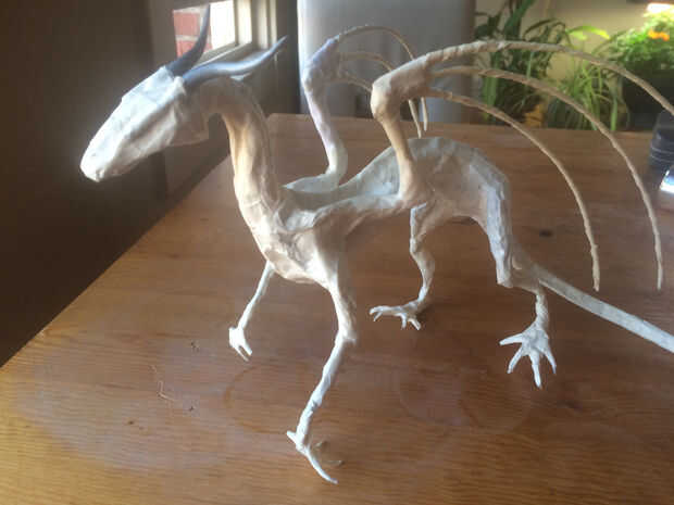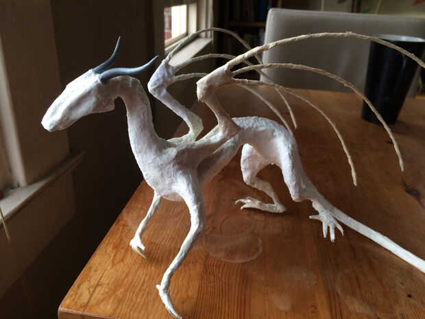 Taping se hace! Este siguiente paso es más o menos opcional, pero recomendable. Dar tu dragón una capa de relleno ligero de agujero del clavo para alisar hacia fuera y eliminar lo peor de las arrugas y pliegues de la cinta. Puede hacer esto durante un par de días para facilidad de manejo, centrándose en una parte diferente del dragón cada día y dejarlo secar. También puede agregar algunos detalles finos con el relleno si están inclinados. Cuenta que una vez que haya agregado el agujero de relleno no puede doblar el dragón o crack, así que asegúrese de que tiene forma de cómo desea que lo primero.