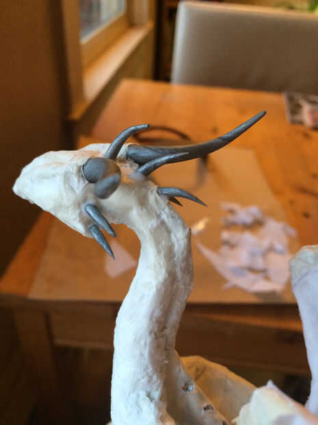 Dragones tienden a tener todo tipo de espinas. No sé qué propósito evolutivo que sirven, pero lo hacen. Formar las espinas de más de modelado de arcilla y les cuece al horno. Hacer algunos de ellos de diferentes tamaños y formas.