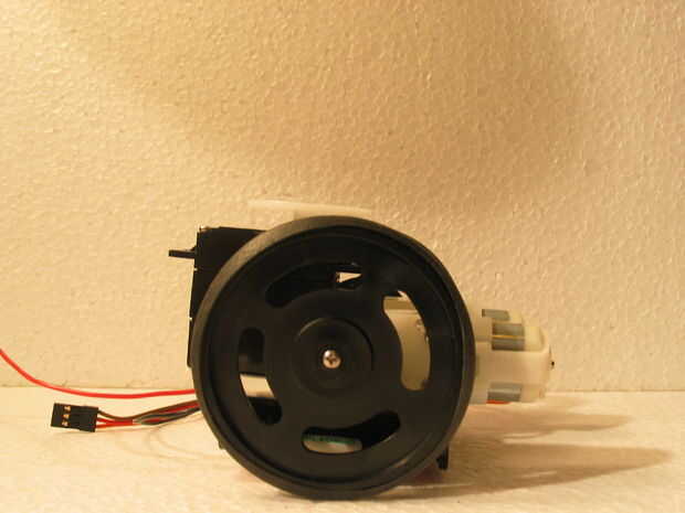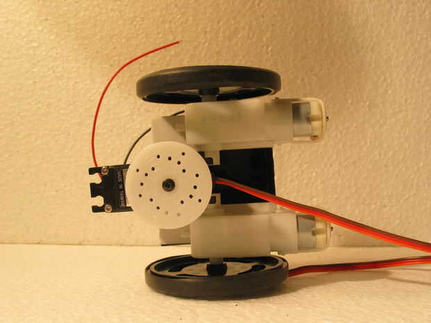 Lo principal es que lo tenemos todo pegadas: baterías, servos y ruedas. Y las ruedas y el servo pueden girar libremente, y puede colocar en las ruedas de it´s de alguna manera, equilibrar o no.