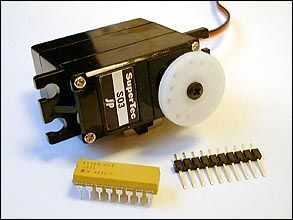 También puede obtener cualquier servo estándar, los pines que se muestra en la imagen y una sola resistencia de 330 Ohm en lugar del chip amarillo, si si desea.