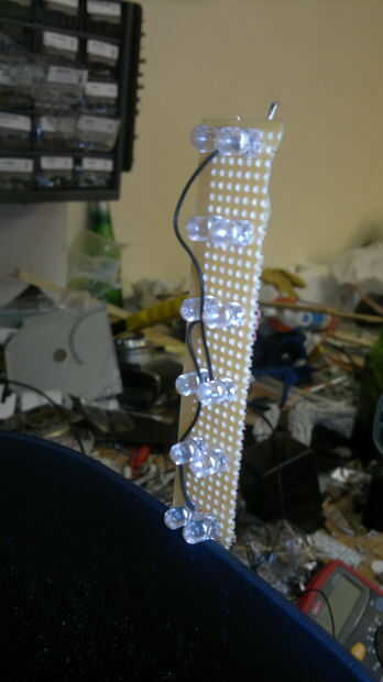 Utilizar 2 bits perfboard con 2 matrices de LED montados sobre cada uno. Hay un total de 24 LED muy brillante. Debería ser suficiente!