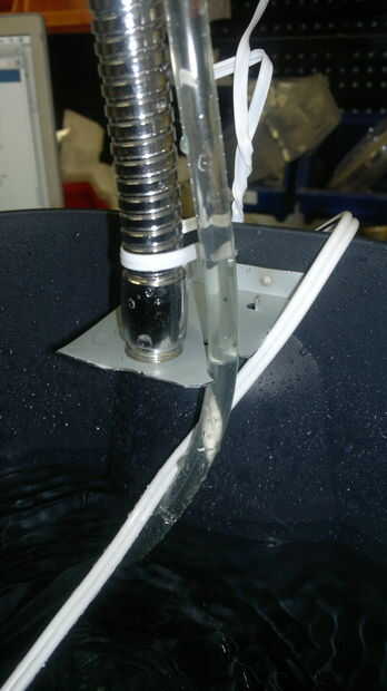 Había montado el cuello de cisne en un soporte de aluminio que até a mi cubo. Y con cinta los tubos a él. Si tuviera una tubería de diámetro más pequeño podría se rosca el tubo en el cuello de cisne, que habría sido impresionante!!