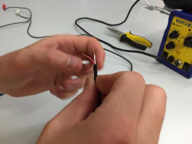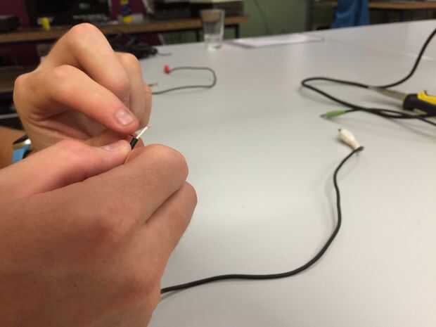Toque todos los extremos hasta que peguen bien, esto es la preparación para el trabajo de soldadura se describe en el siguiente paso. Asegúrese de que ningún cable de cobre solo se sobresalen.