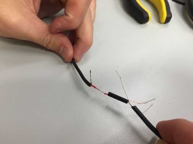 Su tiempo para decir hola! Tome un aliento profundo y mantener una mano firme. Soldar los cables entre sí. En el caso base los colores del partido de cable, como en nuestro caso! Después de que había soldado un calor juntos, cable par guardar la contracción de la tubería para mantener su nueva conexión.