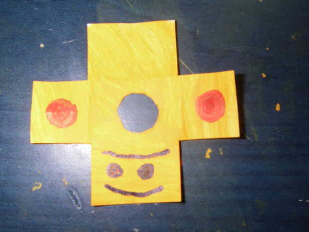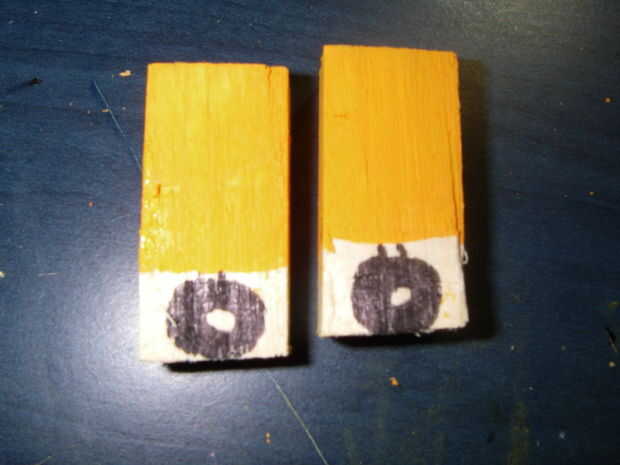 Piernas-dibujar los detalles. Debe haber las ruedas y las líneas. Pegamento las piernas a la parte inferior del cuerpo para que el agujero es frente al robot hacia abajo.