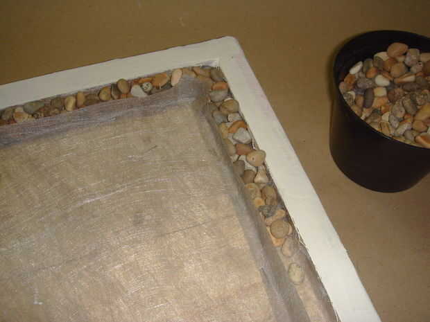 Después de agregar los cantos rodados, se agrega la arena y nivelarla con un palillo plano.