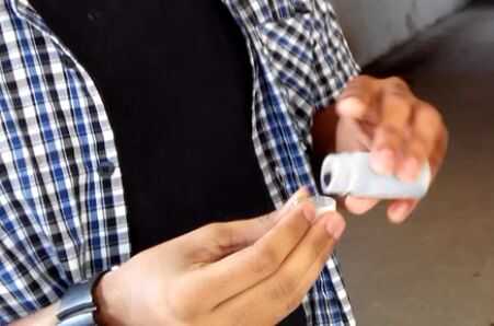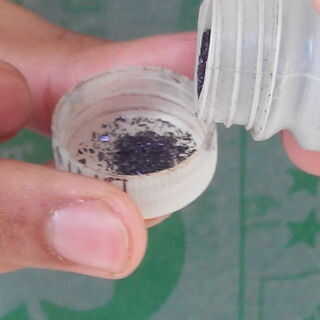 - Luego, tome una pizca de permanganato de potasio y añadir al peróxido.