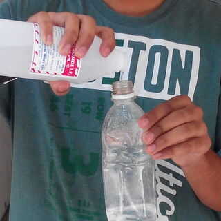 - Luego llenar aproximadamente una sexta parte de la botella con agua oxigenada.