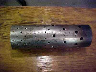 Una vez cortada a la longitud, ponerse en marcha en esos agujeros. Habrá un montón de ellos, y una broca escalonada o "unibit" es muy útil aquí. El flametube se puede hacer de acero inoxidable o regular. Inoxidable se por supuesto duran más tiempo y al calor mejor que el acero suave.