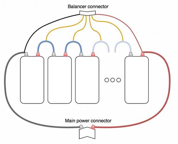 - Conexión de alimentación principal de los extremos de las serie baterías conectadas