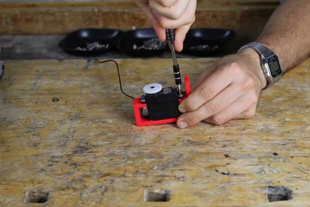 - Uno de los servos del perno en la parte A. Esto requiere cuatro M4 x 12mm tornillos y tuercas