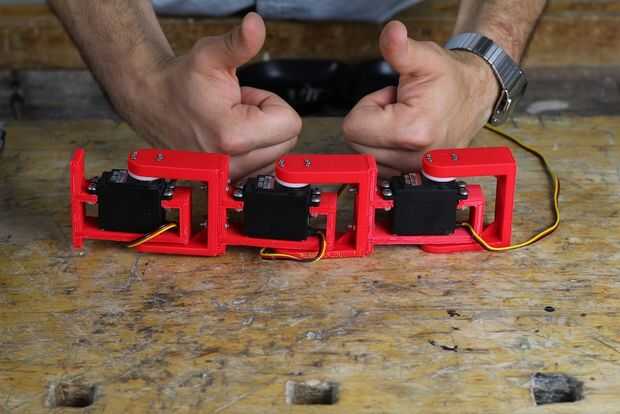 Repita este proceso de construir el chasis hasta que se han montado 3 servos en total. Han construido con éxito brazo de segmento 3 del robot!