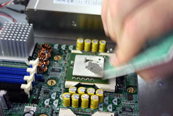 Ahora coloque un poco de goo termal en el centro y utilizar una de esas falsas tarjetas de crédito te mandan en el correo para difundir hacia fuera. Yo uso plata Ártico por Antec.